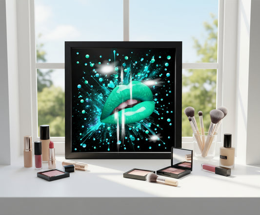*The Kiss**.3d mini 3d framed pink lips shiny glitter picture