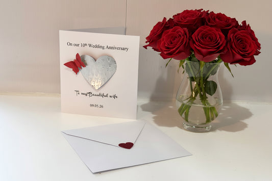 10th anniversary tin card. REAL tin heart card with red butterfly. Recycled tin can husband/wife/mum/dad Tin wedding anniversary.Tin can art