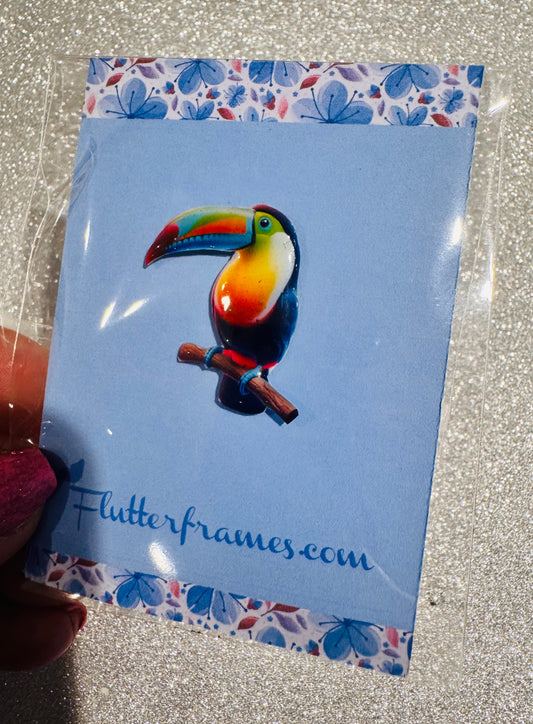 Toucan enamel pin. Handmade from recycled tin cans