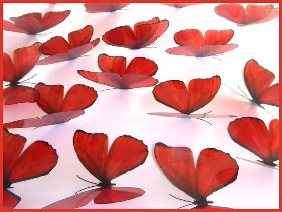 Set of 18 3D RED HAND CRAFTED natural looking butterflies