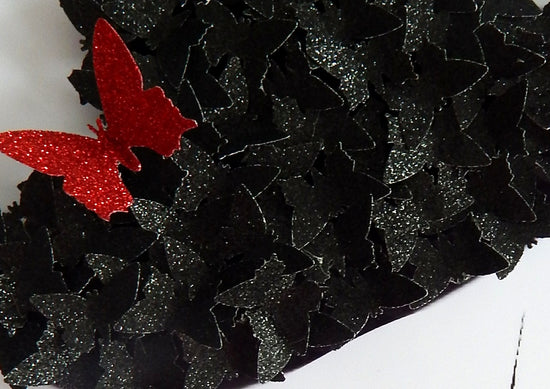 This listing is for the black and red picture, made with lot's of Ebony black glitter butterflies.