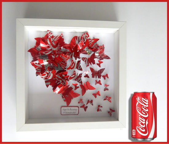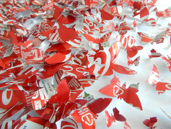 *Butterfly heart made with lots of butterflies, cut from cans of Coco Cola*